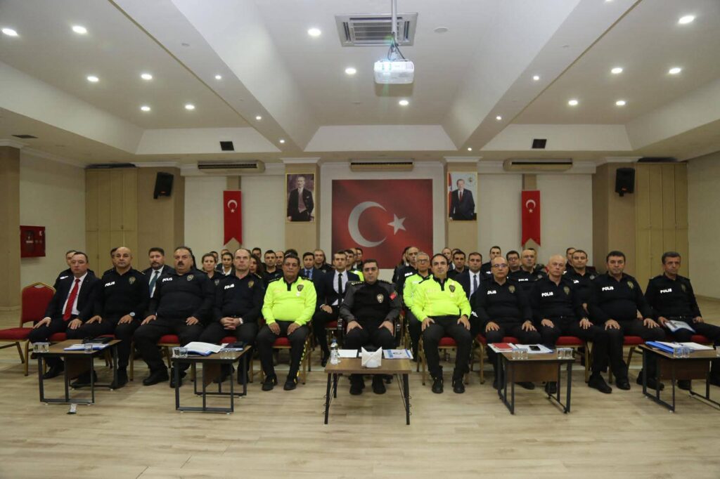 Polisevi’nde İl Emniyet Müdürü Atilla Aksoy başkanlığında, il ve ilçe emniyet müdürleri ile birim amirlerinin katılımıyla aylık değerlendirme toplantısı düzenlendi.